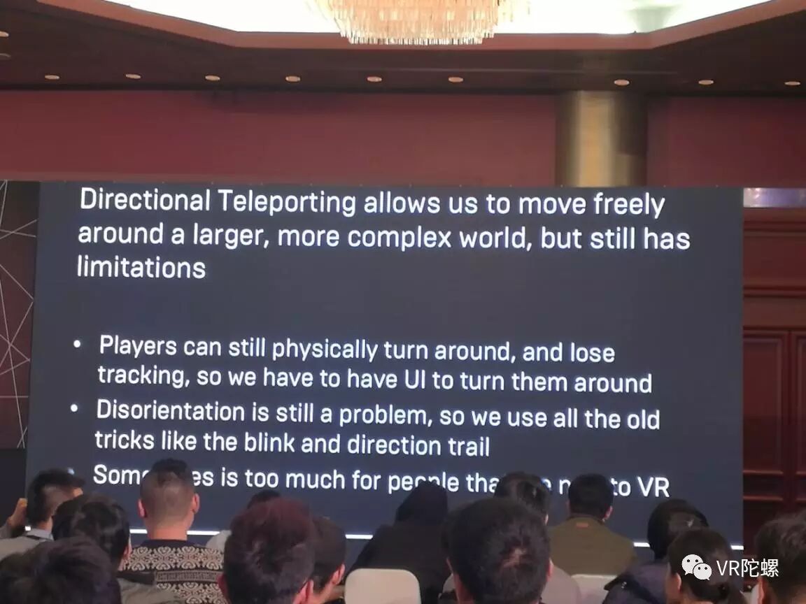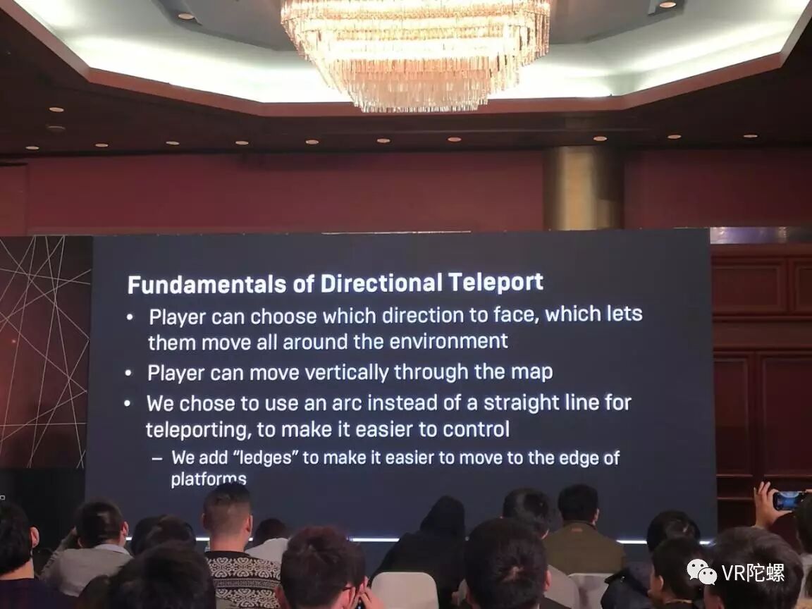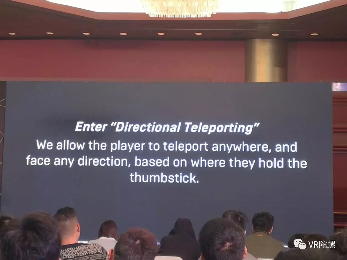 《Robo Recall》的场景相当复杂,高低的地方甚至小的拐角玩家都可以到达,所以我们希望有一些其他系统来帮忙。于是我们加入一个功能叫带方向的传送,即玩家瞄准的方向就是传送的方向。
