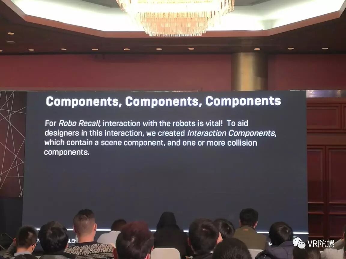 《Robo Recall》里一个很重要的功能就是交互,所以我们专门做了一个Component,而且Scene Component上面会挂一些碰撞和其他的Component。我们来看一下比如双组的机器人,分了头、躯干、双手、双脚,总共加起来有五十个Scene Component,是相当多的。