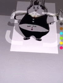 打开《Rakugaki AR》,扫描绘画的图案,就能让图片从纸上跳起来,变成动起来的纸片人,在手机画面内四处乱走、乱跑,甚至会抖动、跳舞。