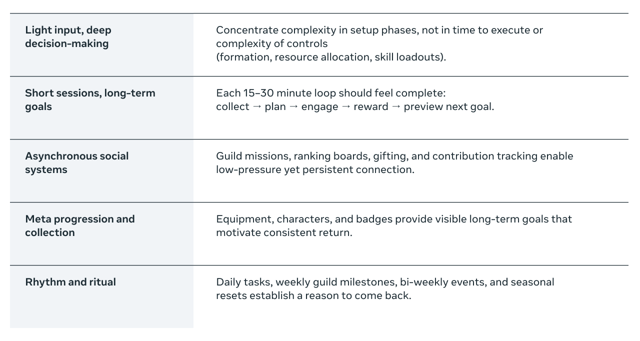 核心特征:低操作疲劳、高决策影响、每局可见奖励